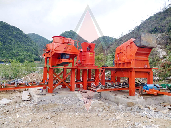 該砂石設備包括ZSW490*110給料機、PE750*1060顎式破碎機、PF1315反擊式破碎機、9928新型立軸沖擊破、1250復合破碎機、3層2460振動篩。該套砂石生產線產能設計在150-280t/h,依據處理的巖石硬度、風化程度而定。